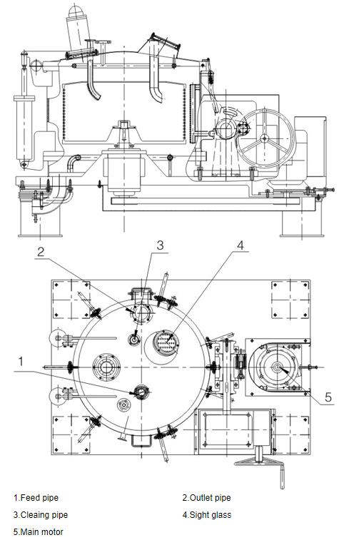The material to be separated enters the high-speed rotating centrifuge drum through the feed pipe. Under the action of the centrifugal force field, the material is filtered through the filter cloth (filter mesh), the liquid phase is discharged through the liquid outlet pipe, and the solid phase is trapped in the drum. Inside. When the filter cake in the drum reaches the loading amount specified by the machine, the feeding is stopped, the filter cake is washed, and the washing liquid is filtered out at the same time. After the filter cake has reached the required deliquescence, the machine is stopped and the filter cake is discharged manually. Enter the standby state.