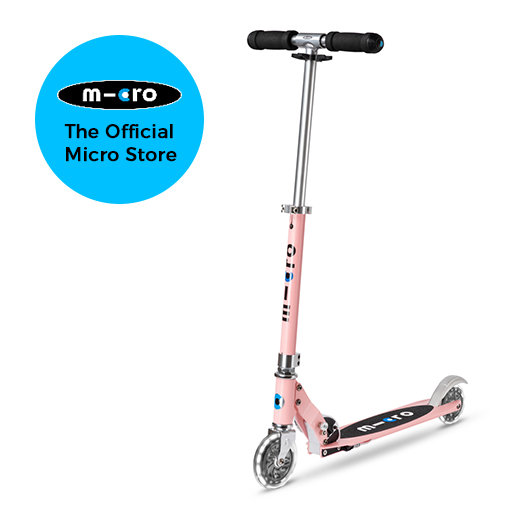 The Micro Sprite can fold up and is easy to carry. This versatile aluminium scooter has been a popular companion for years amongst kids going to school and also commuters. This series now has LED wheels at the front and rear giving this classic Micro Scooter that extra something.